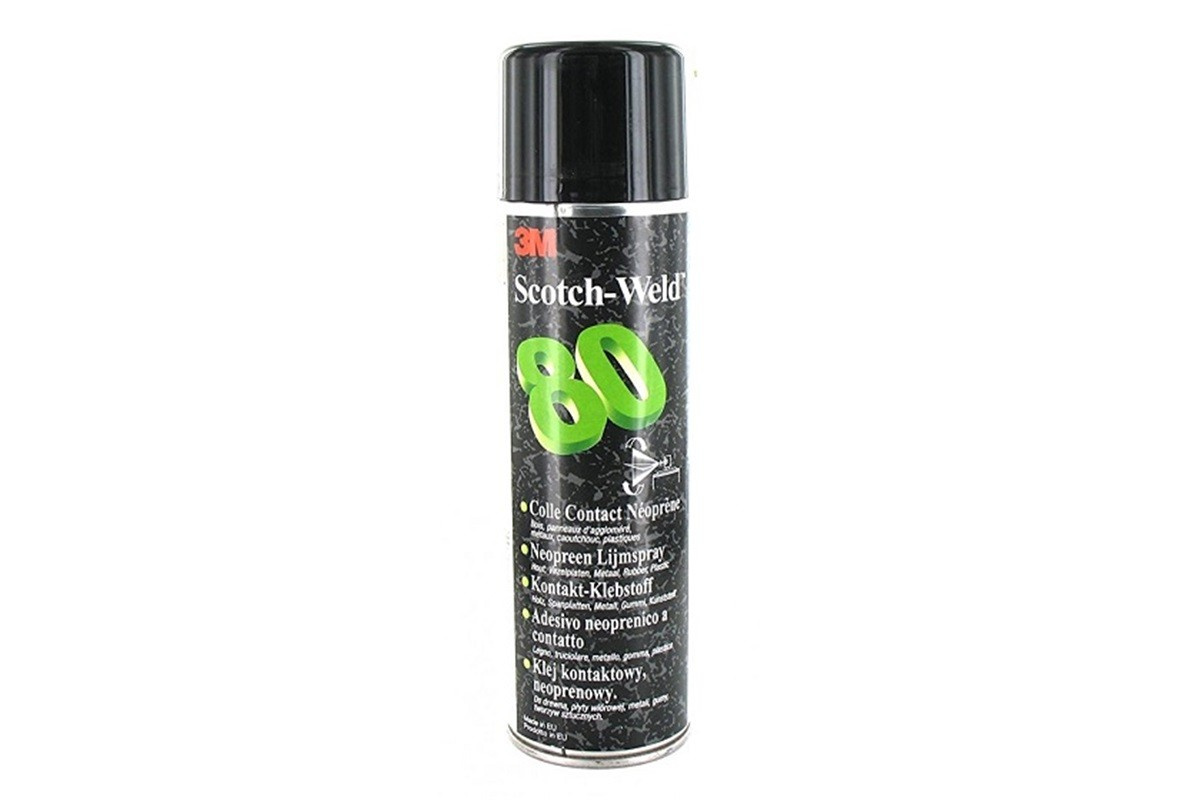 Špičkové vysokopevnostné, rýchlo priľnavé kontaktné lepidlo 3M Scotch-Weld 80 žltej farby vytvára pevné, odolné a trvalé spoje najrôznejších materiálov, predovšetkým pružných gúm a PVC. Má vysokú teplotnú odolnosť. Systém kontrolovaného líniového nástreku zabezpečuje presné nanesenie. Vysoký obsah sušiny. Technické parametre systém:rozpúšťadlový báza:polychloroprén teplotná odolnosť:150 °C odolnosť proti UV:veľmi dobrá odolnosť proti vlhkosti:veľmi dobrá odolnosť proti chemickým látkam:veľmi dobrá aplikácia:striekaním zo spreja