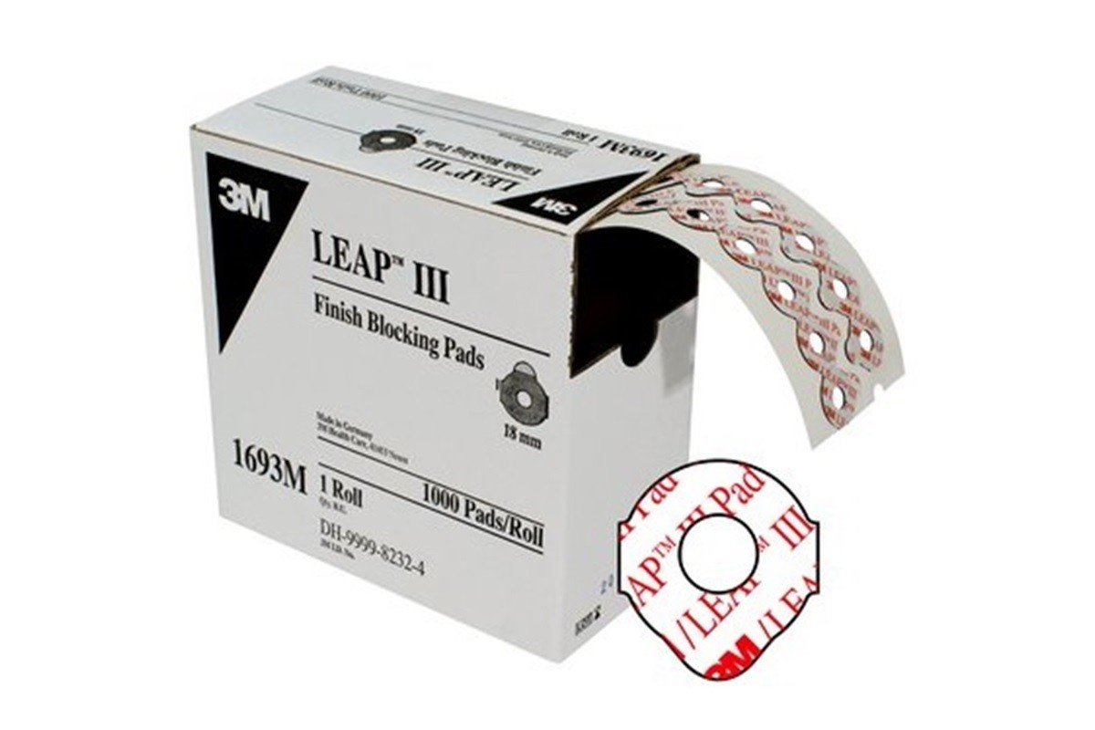 3M Leap III 1693M je špeciálna obojstranne lepiaca penová podložka pre fixáciu pri brúsení štandardných okuliarových šošoviek. Priemer podložky v tvare kolieska: 18 mm, 1 rolka = 1000 podložiek. Technické parametre materiál:čierna polyolefínová pena, hr, 0,56 mm lepidlo:syntetický kaučuk liner:biely potlačený papier