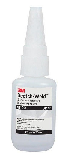 Priemyselné sekundové lepidlo 3M Scotch-Weld SI100 je vhodné predovšetkým na lepenie prírodných materiálov s vyšším povrchovým pH, ako sú drevo, koža, drevovláknité materiály, korok a pod.