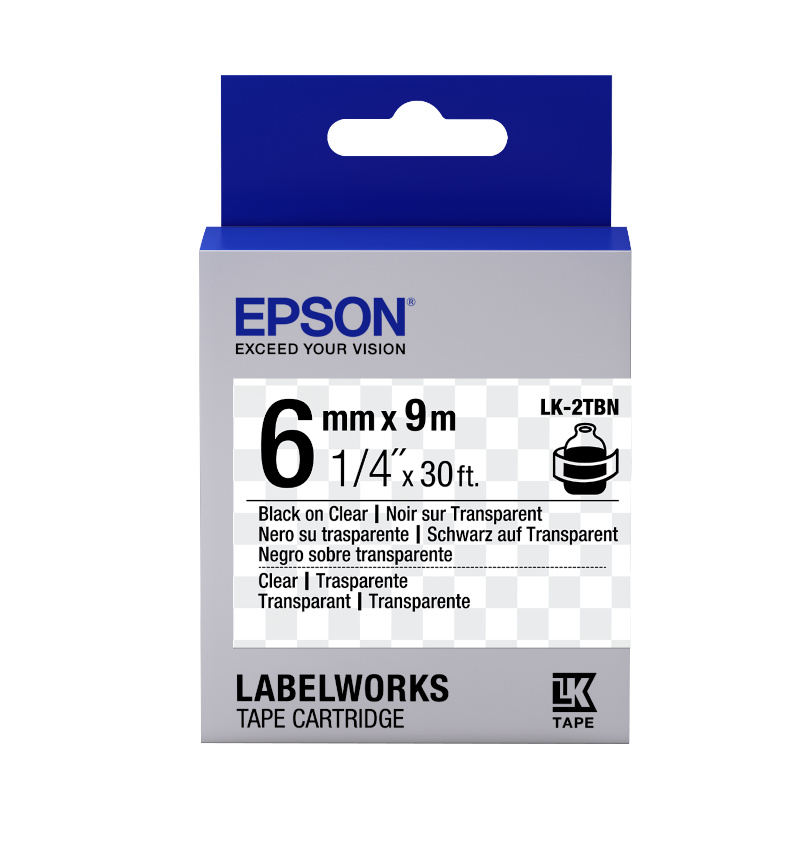 Epson LabelWorks LK-7TBN C53S657007 36mm x 9m, čierna tlač / priehľadný podklad, originálna páska možno použiť v týchto tlačiarňach