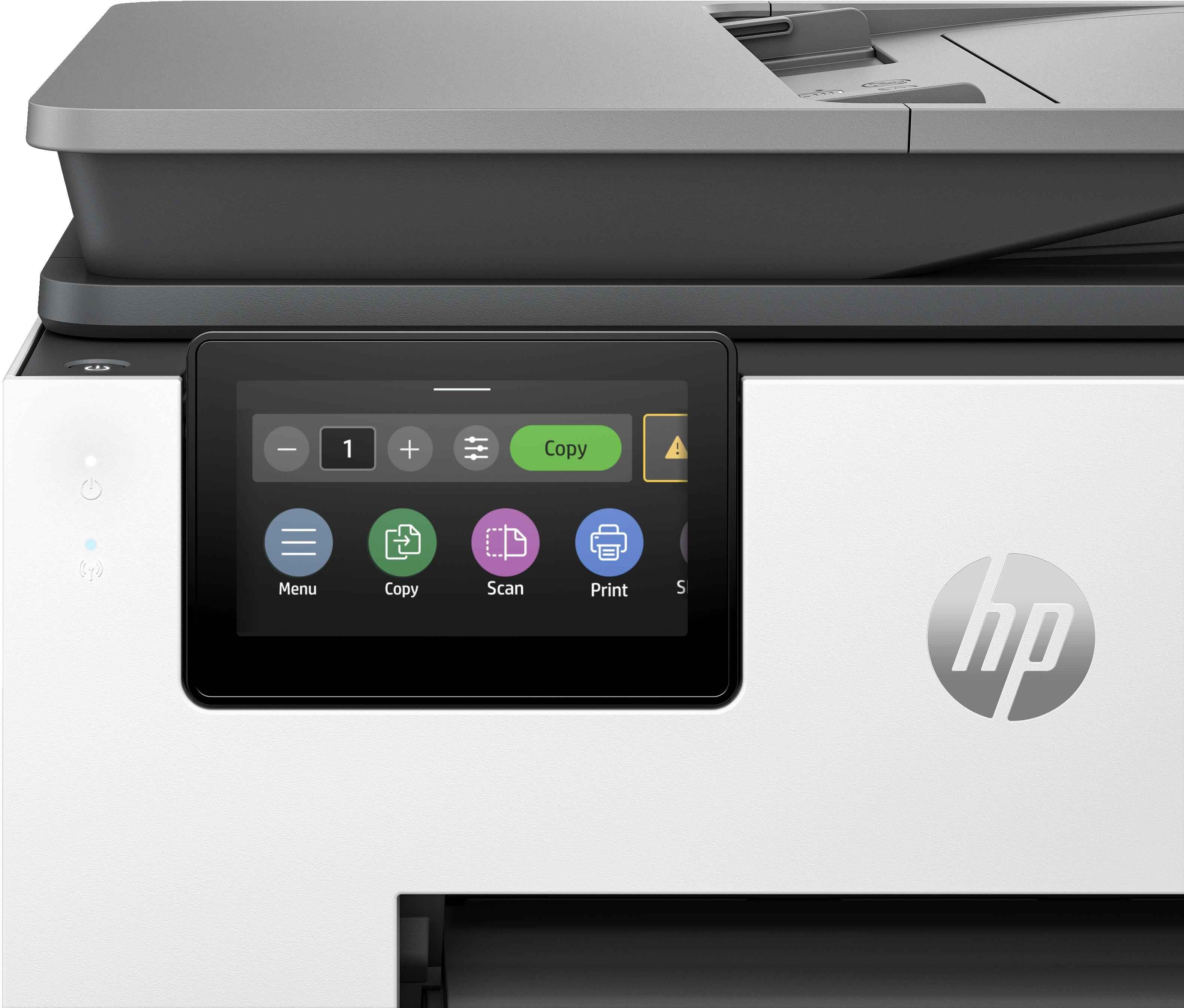Obsah balenia: Tlačiareň HP OfficeJet Pro 9132e All-in-One; Čierna zavádzacia atramentová kazeta HP 937; Azúrová zavádzacia atramentová kazeta HP 937; Purpurová zavádzacia atramentová kazeta HP 937; Žltá zavádzacia atramentová kazeta HP 937; Regulačný leták; Leták s upozornením na atrament; Napájací kábel; Inštalačný leták; Referenčná príručka