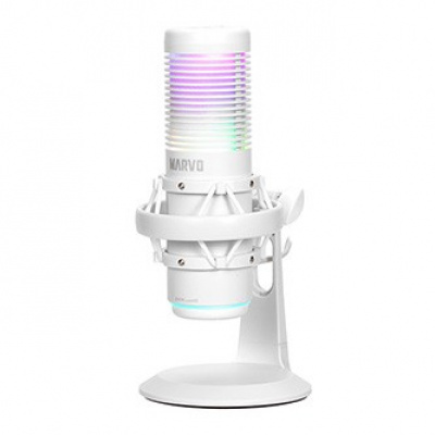 Popis výrobku Marvo, herní/streamovací mikrofon, BLAST 60 White, bílý, RGB podsvícení, vstup pro sluchátka