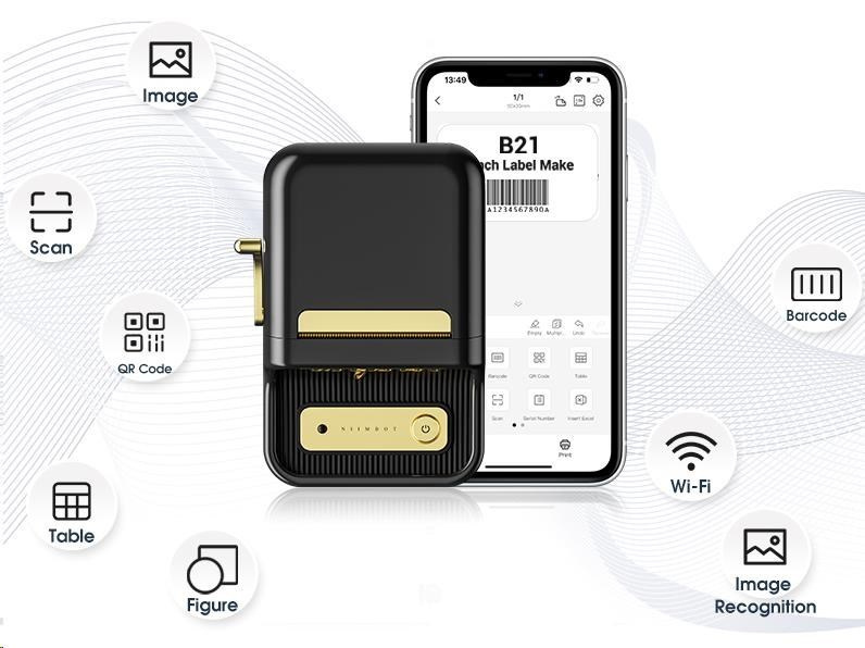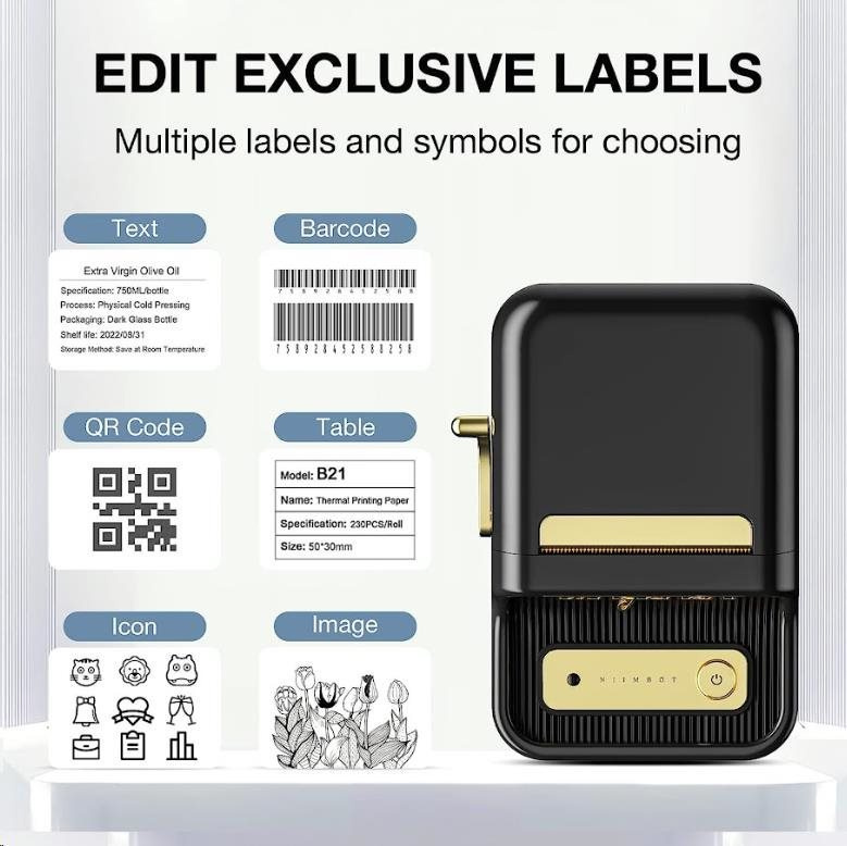 Tlačiareň štítkov Niimbot Smart B21 1AC19051601 je výkonná prenosná tlačiareň etikiet, ktorá kombinuje moderné technológie, užívateľskú jednoduchosť a skvelú kvalitu tlače. Táto termálna tlačiareň štítkov Niimbot B21 je navrhnutá tak, aby zvládla tlač presných a odolných etikiet v kancelárii, obchode, sklade aj na cestách — bez nutnosti použitia atramentu či tonera.