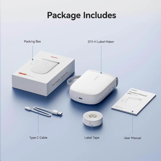 Štítkovač Niimbot D11-H Smart 1AA57281601, pútko na zápästie, USB-C nabíjací kábel, sada bielych samolepiacich štítkov 12 x 40 mm (160 ks)