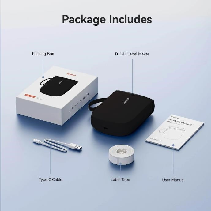Štítkovač Niimbot D11-H Smart 1AA57311601, pútko na zápästie, USB-C nabíjací kábel, sada bielych samolepiacich štítkov 12 x 40 mm (160 ks)
