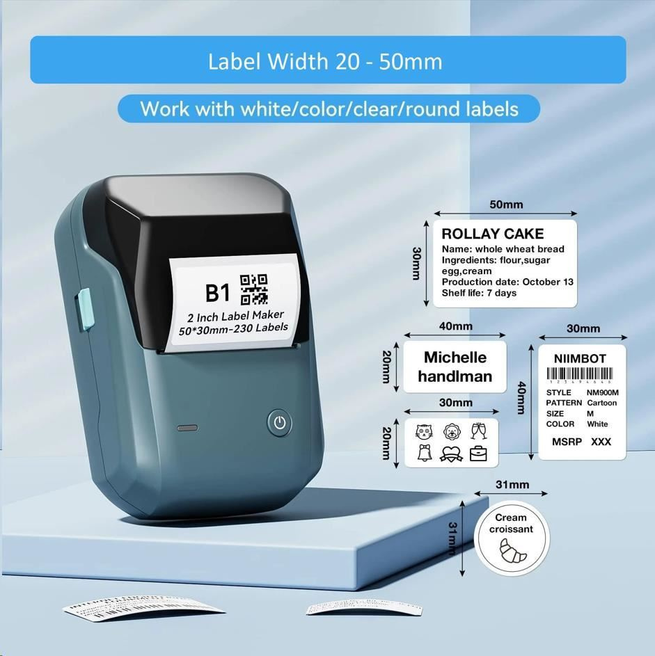 Vďaka bezdrôtovému pripojeniu Bluetooth možno tlačiareň ľahko prepojiť s mobilným zariadením. Prostredníctvom aplikácie Niimbot App (dostupné pre Android aj iOS) je možné navrhovať, upravovať a tlačiť štítky počas niekoľkých sekúnd. Tlačiareň štítkov Niimbot Smart B1 1AC12121602 podporuje rôzne šírky štítkov a ponúka skvelú kvalitu tlače aj pri dlhodobom používaní.