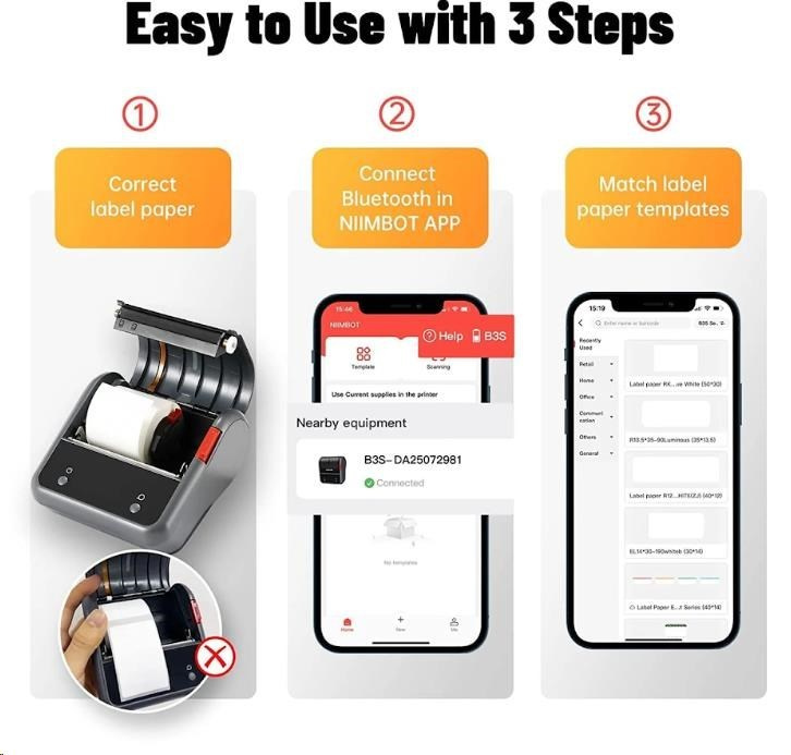Vďaka pokročilej termálnej technológii tlače nevyžaduje tlačiareň štítkov Niimbot B3S Smart žiadny atrament ani toner, čo výrazne znižuje prevádzkové náklady a uľahčuje údržbu. Zariadenie je vybavené Bluetooth pripojením a umožňuje bezdrôtovú tlač priamo z mobilného telefónu alebo tabletu prostredníctvom aplikácie Niimbot App.