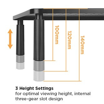 Powerton ERGO BUCO podstavec ponúka možnosť výškového nastavenia v troch úrovniach 10 / 12 / 14 cm, aby vyhovoval potrebám naozaj každého používateľa. Nepreťažujte svoju krčnú chrbticu a šijové svaly, zdvihnite svoj monitor do správnej výšky.