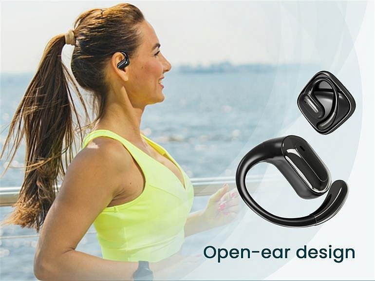 UŽÍVAJTE SI BEZDRÔTOVÚ MOBILITU Konštrukcia s otvorenými ušami vás udrží v obraze, aby ste mali prehľad o svojom okolí. Počúvajte hudbu a telefonujte bez použitia rúk. Funguje s kompatibilným notebookom, tabletom alebo smartfónom kompatibilným s BT Vlastnosti Otvorené slúchadlá BT TWS Otvorená konštrukcia s háčikom pre optimálne pohodlie Až 3 hodiny počúvania na jedno nabitie Batéria v úložnom puzdre pridáva až 9 hodín počúvania Automatické stlmenie hudby v prípade prichádzajúcich hovorov LED indikátor stavu Špecifikácie Rozhranie: BT v.5 Frekvenčný rozsah BT: 2402 ~ 2480 MHz RF výstupný výkon: 4 dBm Podporované profily: HSP, HFP, A2DP a AVRCP Doba nabíjania: až 1 hodina Vstupný výkon: 5,0 V, 300 mA (1,5 W) Prevádzkový dosah: až 10 m vo voľnom priestore Frekvenčná odozva reproduktora: 20 Hz - 20 000 Hz Batéria: puzdro 300 mAh; slúchadlá interné 30 mAh x 2 ks, Li-Polymer Čistá hmotnosť (celá sada): 45 g