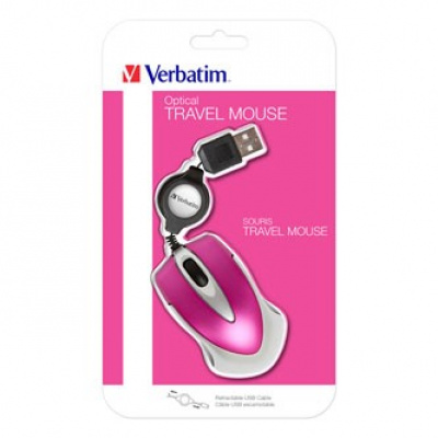 Popis výrobku Verbatim Myš Go Mini 49021, 1000DPI, optická, 3tl., drátová USB, růžová, mini